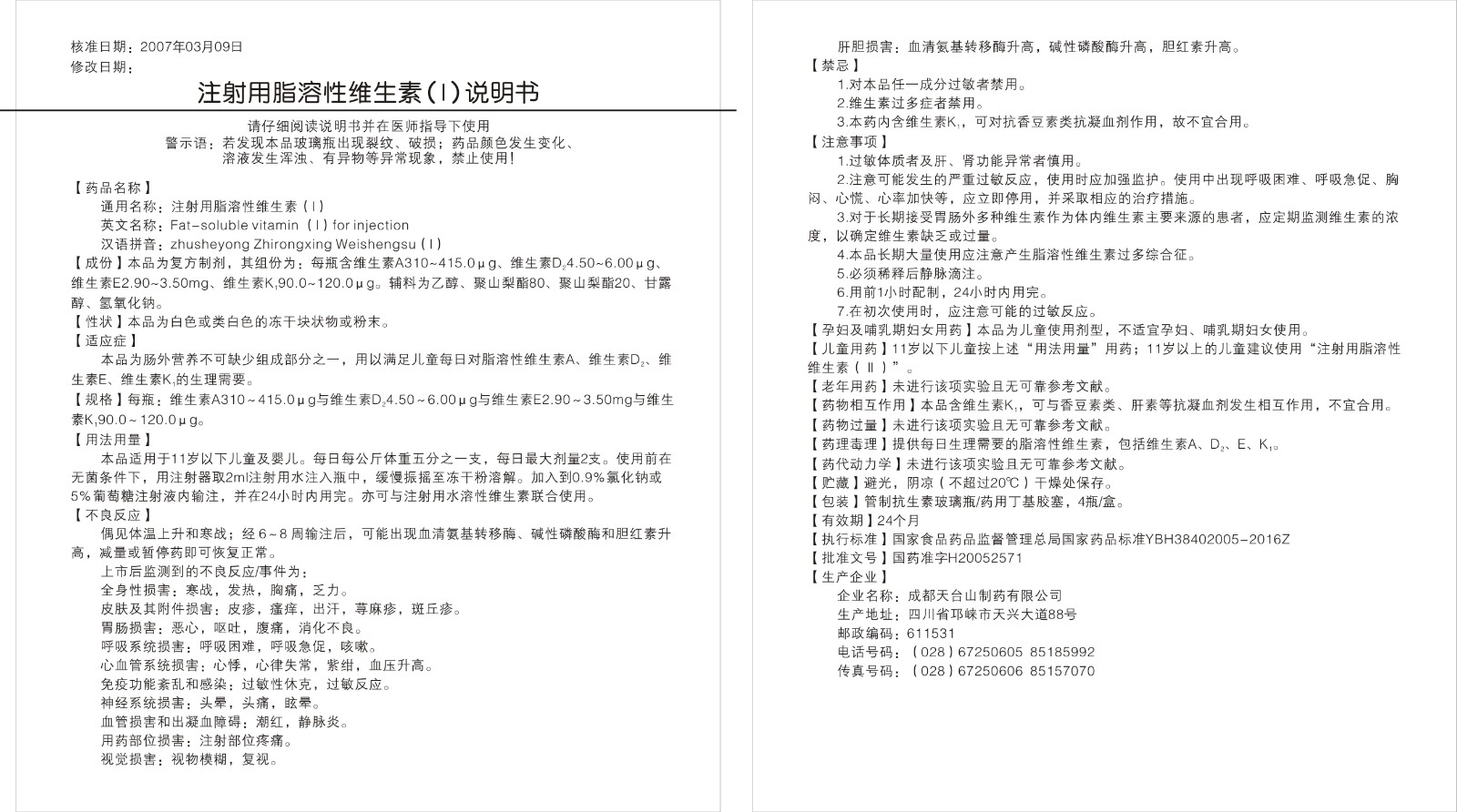 【通用名】注射用脂溶性維生素(Ⅰ)